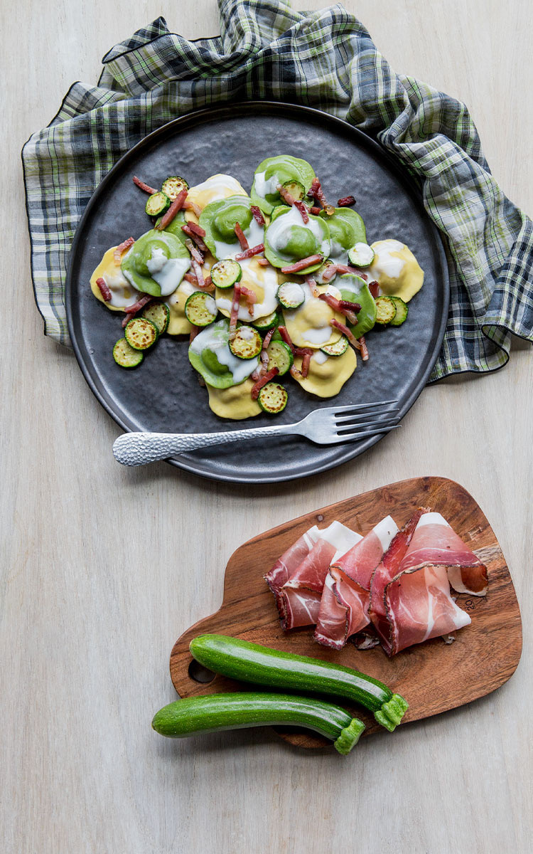 DUETTO Burrata e Basilico Con speck, zucchine e panna