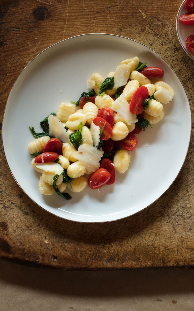 Gnocchi con pomodorini, spinaci e scaglie di Parmigiano