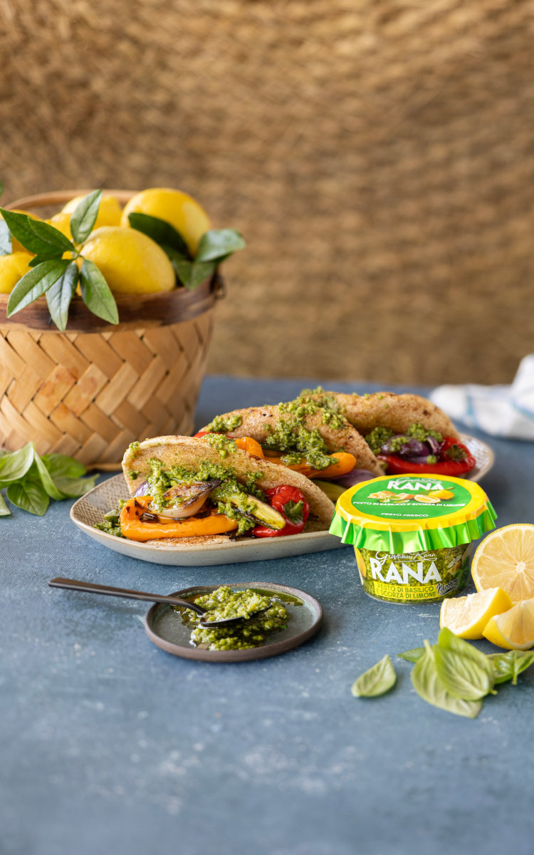 PANE NAAN CON VERDURE ARROSTO E PESTO AL LIMONE