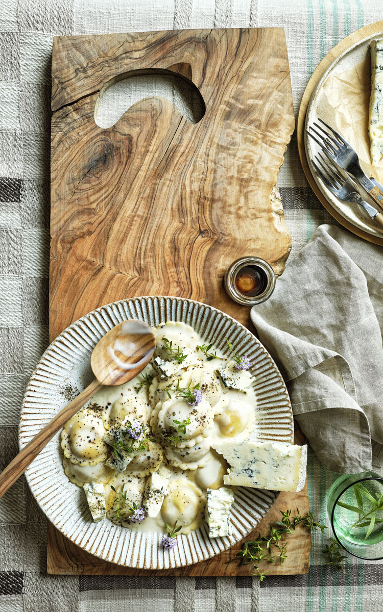 RAVIOLI RIPIENI DI FUNGHI PORCINI CON FONDUTA DI FORMAGGIO ERBORINATO