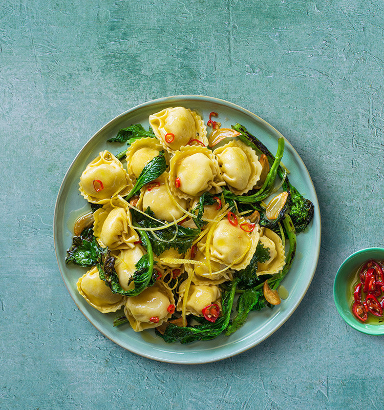 Saltate in padella con una noce di burro i friarielli assieme al peperoncino. Cuocete i tortellacci in abbondante acqua leggermente salata e scolateli dopo il tempo indicato sulla confezione. Saltate ravioli con i friarielli e serviteli con peperoncino fresco e zest di limone.