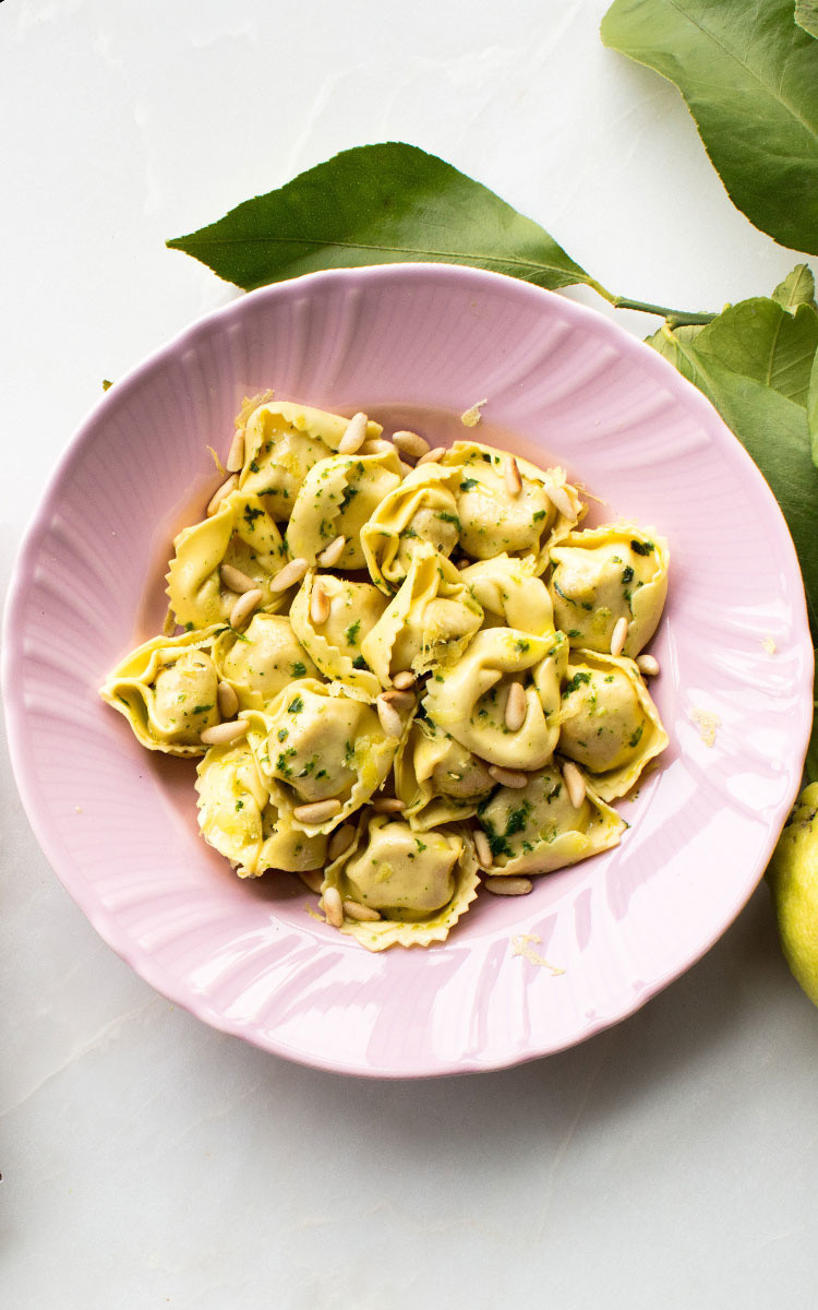 Cospargete i piatti con pinoli tostati, scorza di limone e servite.