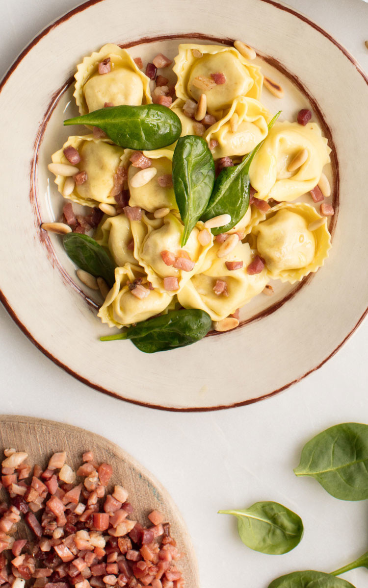 SFOGLIAVELO SPECK E FORMAGGIO TIROLESE CON PINOLI, SPECK E SPINACINO