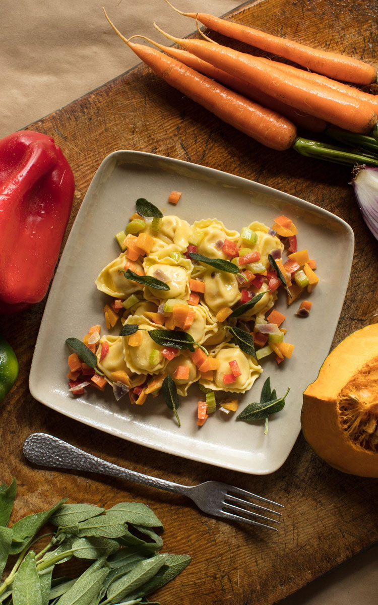 Nel frattempo cuocete i tortellini seguendo le istruzioni riportate sulla confezione, scolate e versate nella padella con le verdure. Unite anche il Parmigiano Reggiano e amalgamate bene il tutto, quindi servite.